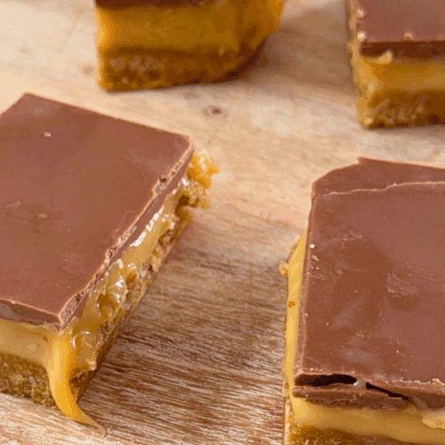- Pour the melted chocolate over the cooled caramel layer and spread evenly. Refrigerate for 2-3 hours, or until firm. Once set, slice into 16-20 pieces.