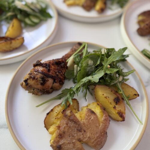 Family Friendly Chicken Drumsticks, Smashed Potatoes & Rocket Salad