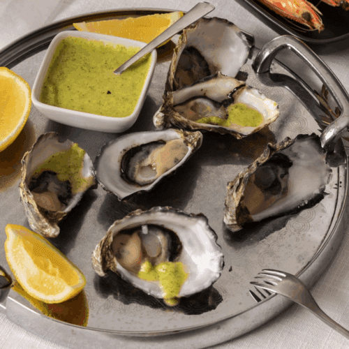 Fresh Oysters Served with Green Herb Vinaigrette