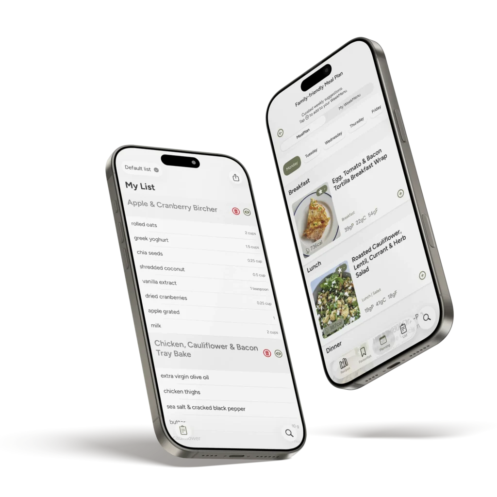 Simply select your meals, hit generate & your categorised shopping list is ready to take to the supermarket!
