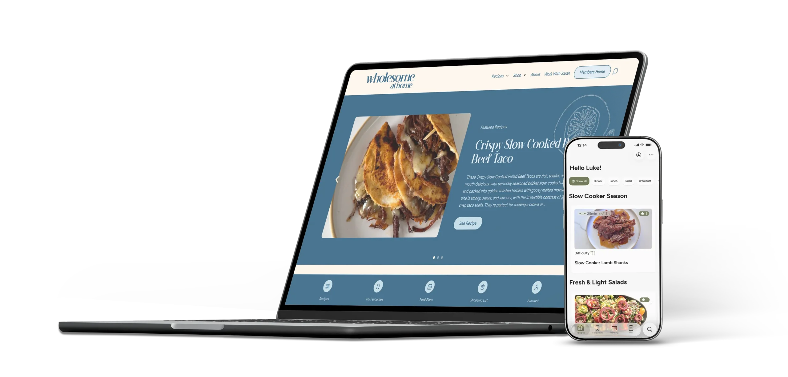 Wholesome at Home is Sarah’s brand-new digital membership, available as a monthly or annual subscription. As a member, you’ll unlock exclusive recipes, weekly meal plans curated by Sarah, the ability to build your own custom plans, and handy shopping list functionality. You’ll also enjoy special perks like discounts on Sarah’s recipe eBooks and access to members-only events.