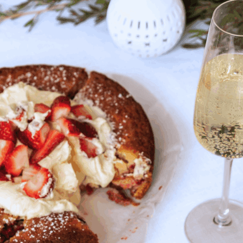 Vanilla, Raspberry & Apple Cake with Cream & Fresh Berries