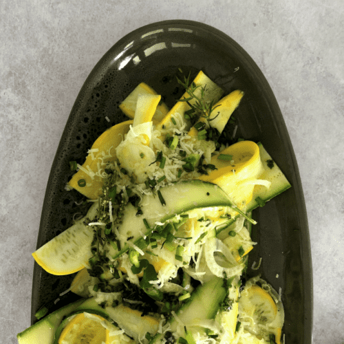 If you can get yellow zucchini, they look beautiful in this dish! They are only in season in summer. You can always use all green zucchini if you can’t get your hands on them.