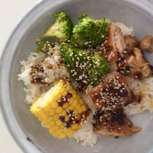 Air Fryer Hoisin Honey Chicken with Broccoli & Rice