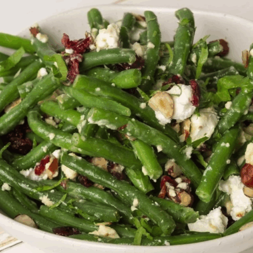 For the salad: Mix together the green beans, parsley, mint, spring onion, feta and almonds.