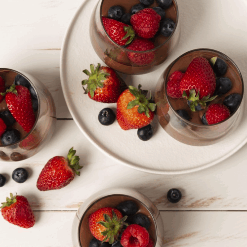 Remove the mousse from the fridge 30 minutes before serving. Top with extra whipped cream and fresh raspberries.